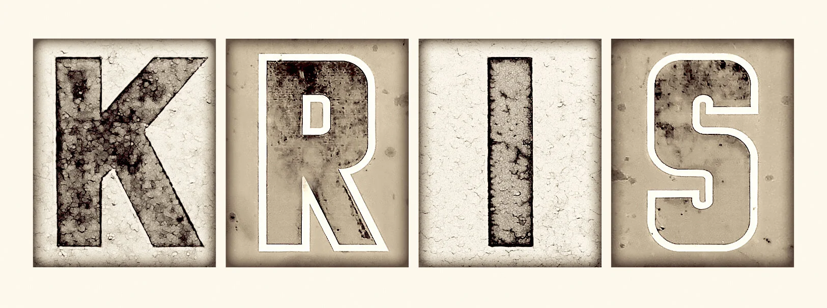 Here I create custom typographic solutions of anything you’d like spelled out using typography from my photographs. Character Options include but are not limited to square or vertical crops, spaced or touching, borders or no, drop shadows and outer glows, color, monochromatic or black and white. Backgrounds can range from none to a favorite color or a photograph—color, monochromatic or black and white—full intensity or tinted back. All are represented below—more samples to come!