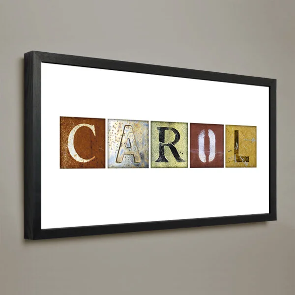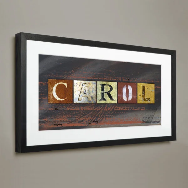 Pricing: Typography: $25 for 1 to 7 characters, $35 for 8 to 14 characters, $45 for 15 to 21 characters and $2 for each character above that. Add $1 each for retro photo print-style characters (see canvas print CAROL sample below). Background: Add $10 if you’d like to include a texture photograph background, $20 if it’s a “prepared” background image (something other than a straight photograph). My end product to you will be a high resolution digital file which you will own, print and use as you see fit*. Print options are available.